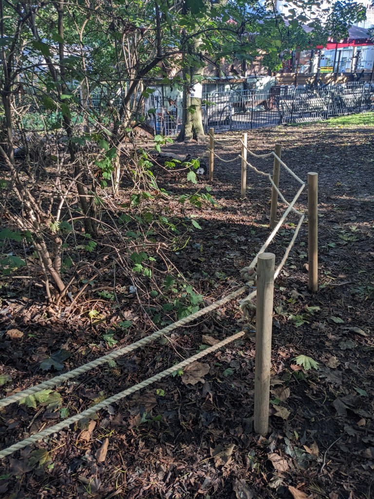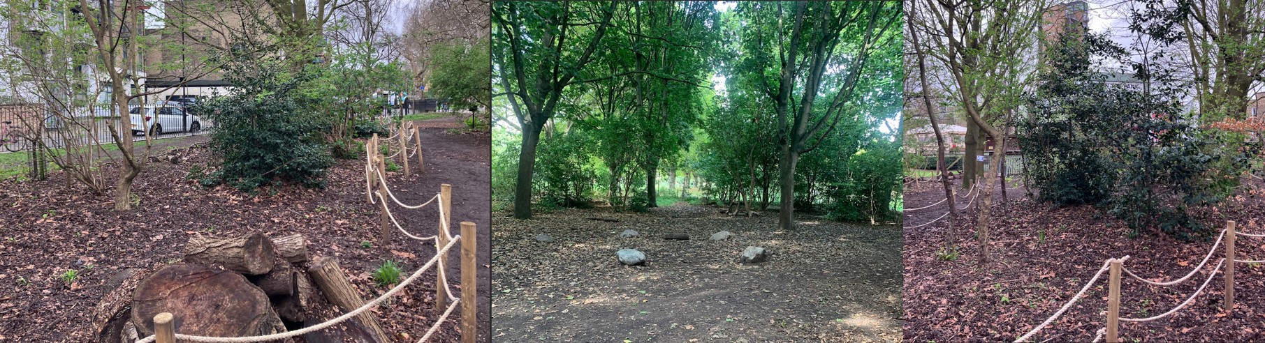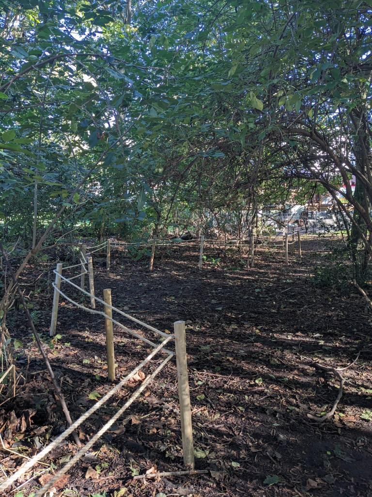Areas that have been roped off have been planted with new plants and wildlife habitats have been built here. Please try and avoid walking and running in these areas.